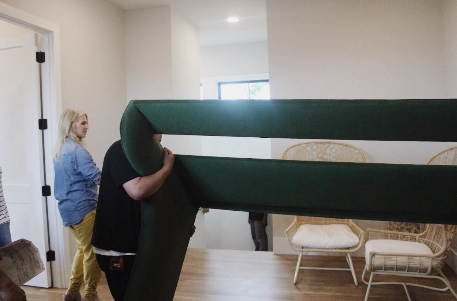 One of my favorite parts of any install day is watching the trucks roll up! I watched through the window as all of the furniture I ordered began unloading. There is something so exciting about seeing the things I’ve selected and dreamed up come to life! Some items came from the receiver and some items we carefully packed in our cars. There is definitely a lot of schlepping stuff that takes place in my world.