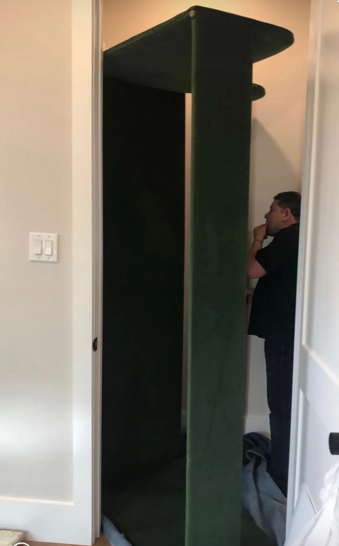 Another thing I have to remember during installs is that things will not always go as planned! The bed that I had custom made almost didn’t fit through the door! Talk about thinking on your feet! (Pictured is my thinking face :-) )