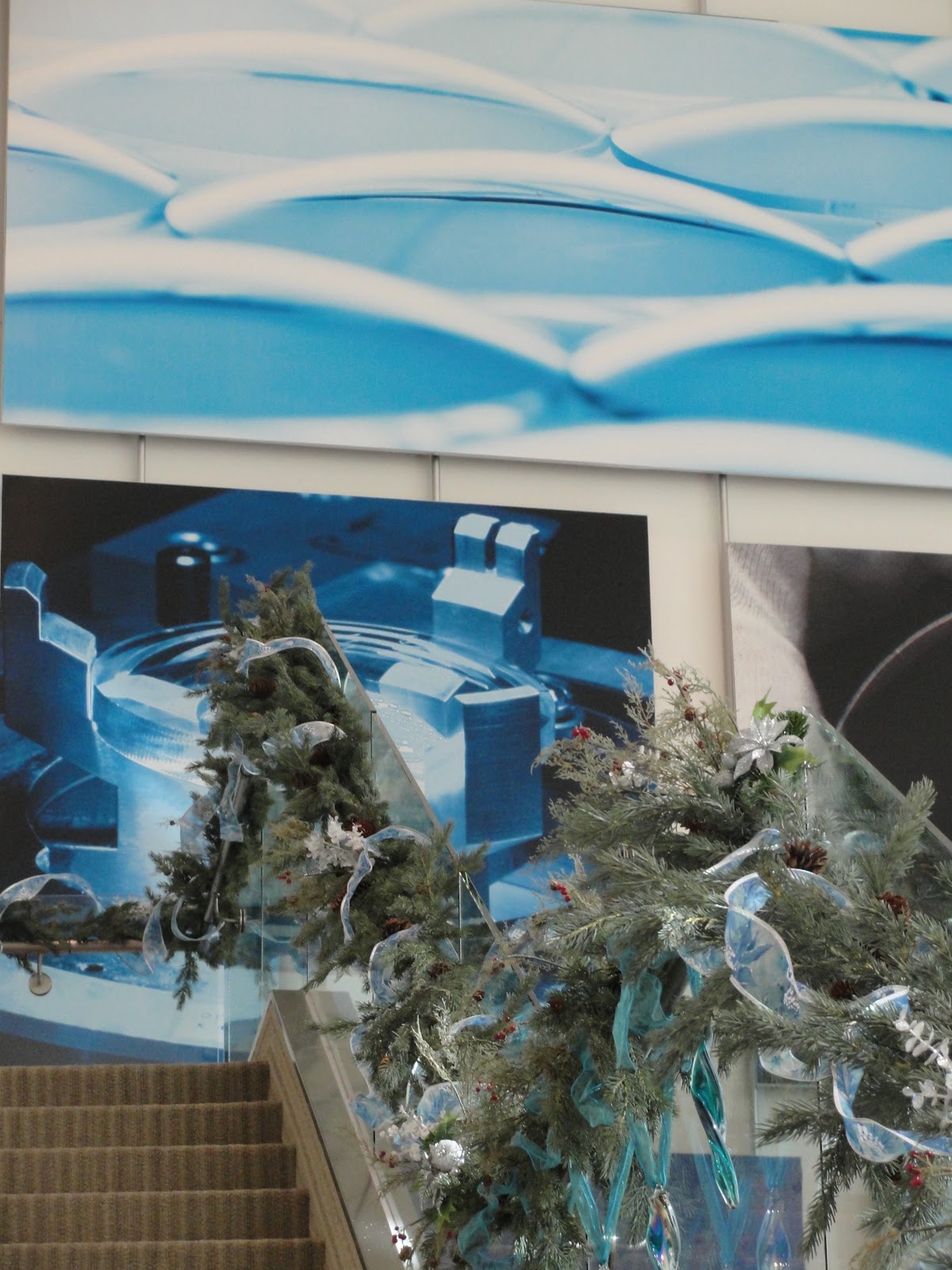 They have a wonderful color scheme. Ice blue, silver and white. I coordinated all the decorations with their large artwork that hangs in their reception area.