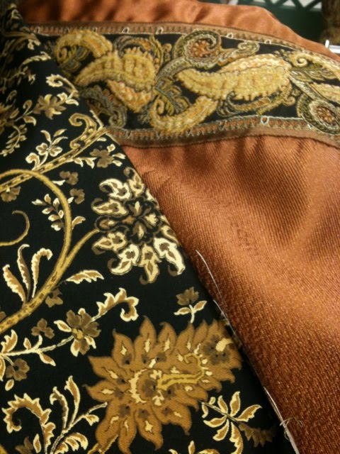 I'm working on several drapery orders right now.  My office is filled with gorgeous fabrics and trims and I'm loving every minute of it.