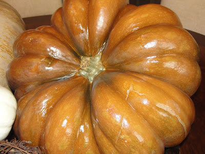 Notice the sheen on them. I asked how they do this and one of the worker's at the market told me they wash them really well, getting ALL the dirt off the pumpkins. They then dry them really well and spray a satin sheen on them. You need a very light coat because apparently it can run!