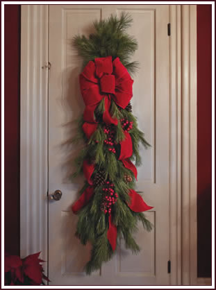 My inspiration for this table was the above Christmas swag. See below for pictures of other swags. I purchased it because I fell in love with the colors. They aren't the typical red and green colors we all usually have for Christmas and it goes really well in my house!