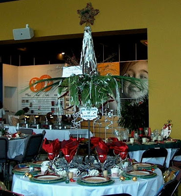 Here's the table.  I made a chocolate tree as the centerpiece and everything was chocolate on the table.  It smelled incredible as you walked by.