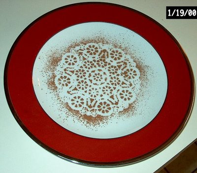 I did this one year for a Christmas party.  Put a doily on the plate and sprinkled it with cocoa powder and then removed the doily.  This is purely decorative only.  This happened to be a table that I did for a Christmas Open House.  If you found a pumpkin stencil, you could do this with orange sprinkles or orange sugar.