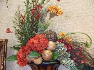 This year I found a wrought iron rack at a garage sale and decided it would be perfect for my pumpkins to keep them secure. Don't know what it would have been used for previously? All I know is that it will be great for my Christmas decor too!