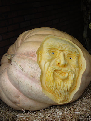 We have giant rocks outside our house and in the past I've had trouble keeping the pumpkins from blowing away or falling off the rocks.