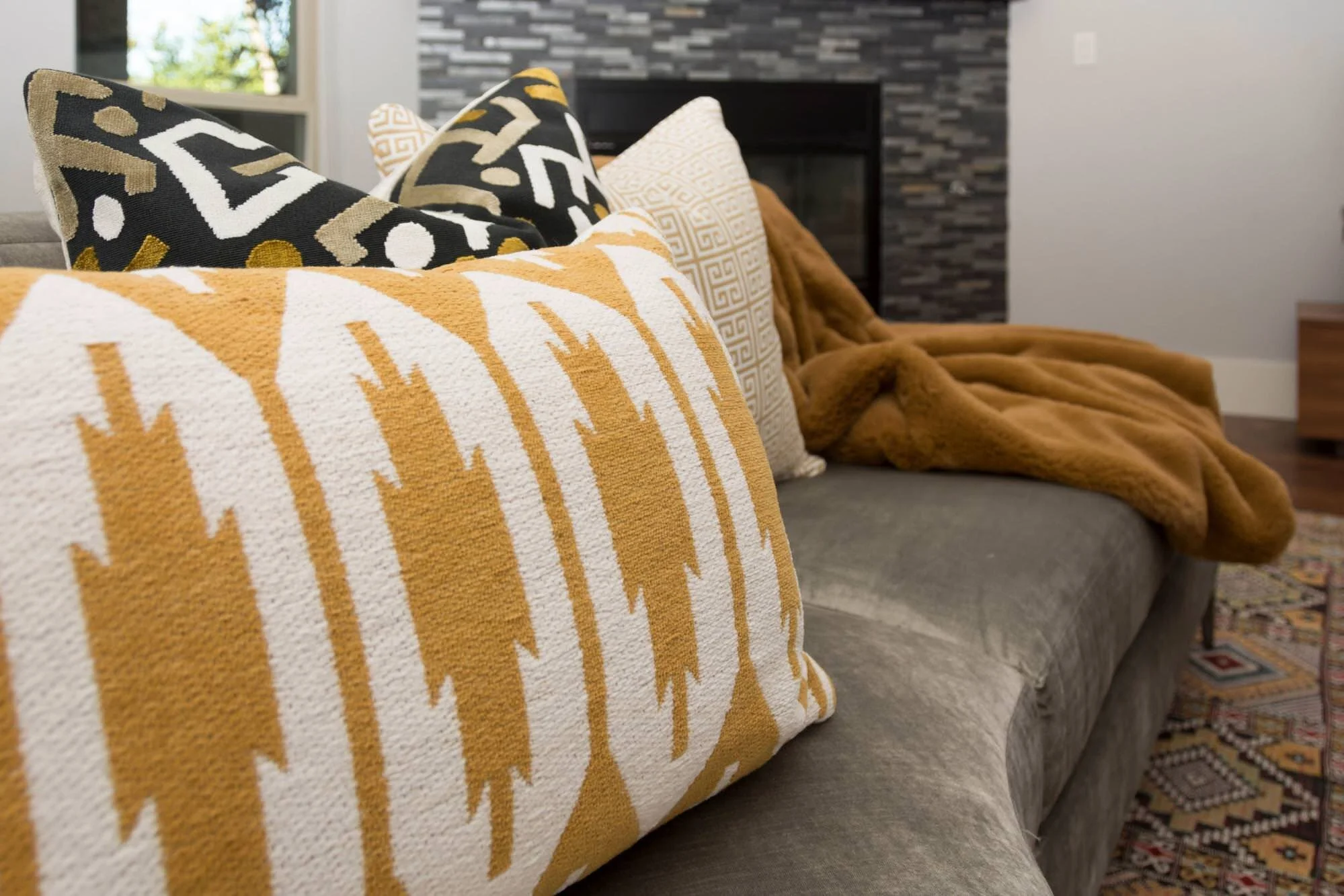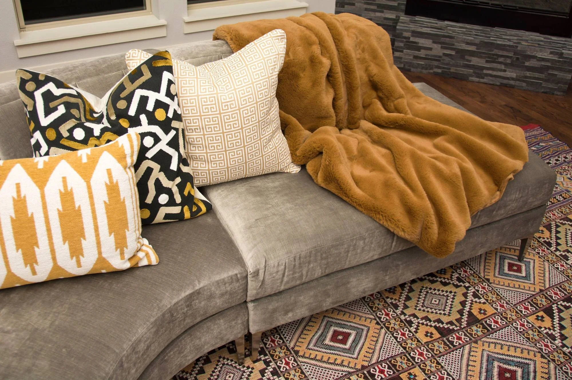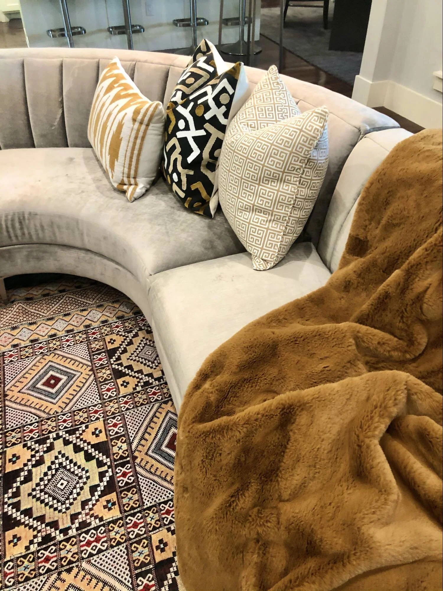 The rug was purchased by the client in India during one of their vacations. It’s tricky to find just the right pillows to work with a colorful, patterned rug. I feel like we nailed it!