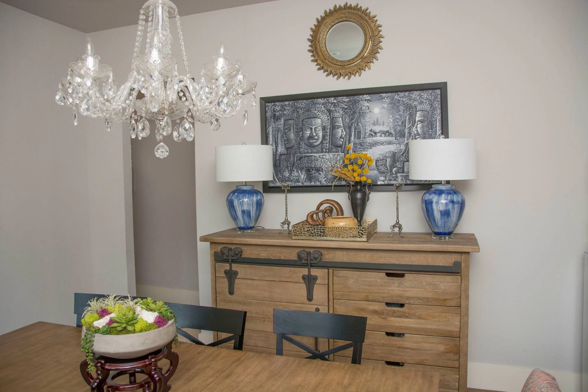 The dining room needed a few touches. We cleared the existing buffet and brought in new accessories.