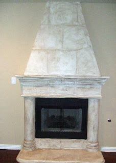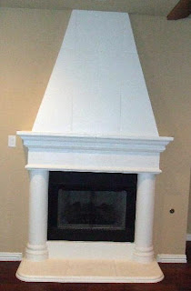 Painted this fireplace today. It's a brand new house and there are a lot of warm textures throughout the home. Wood in the living room, warm tile in the kitchen, amazing stone back splash and then....this WHITE fireplace. It just stood alone in the room. I recommended to my client that we warm it up with a faux finish.