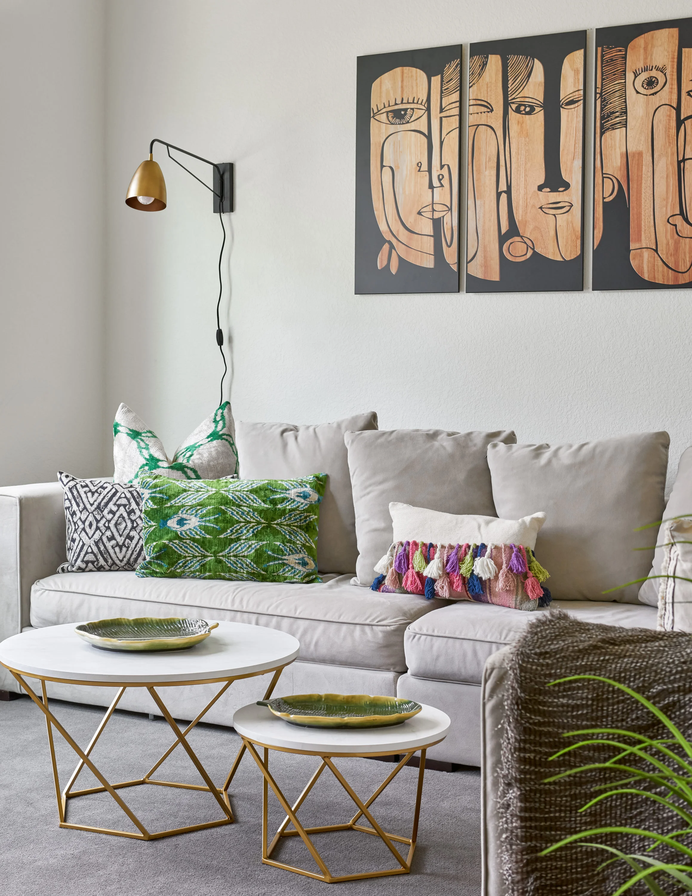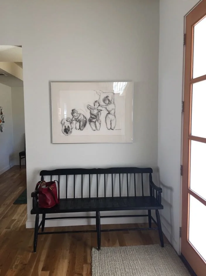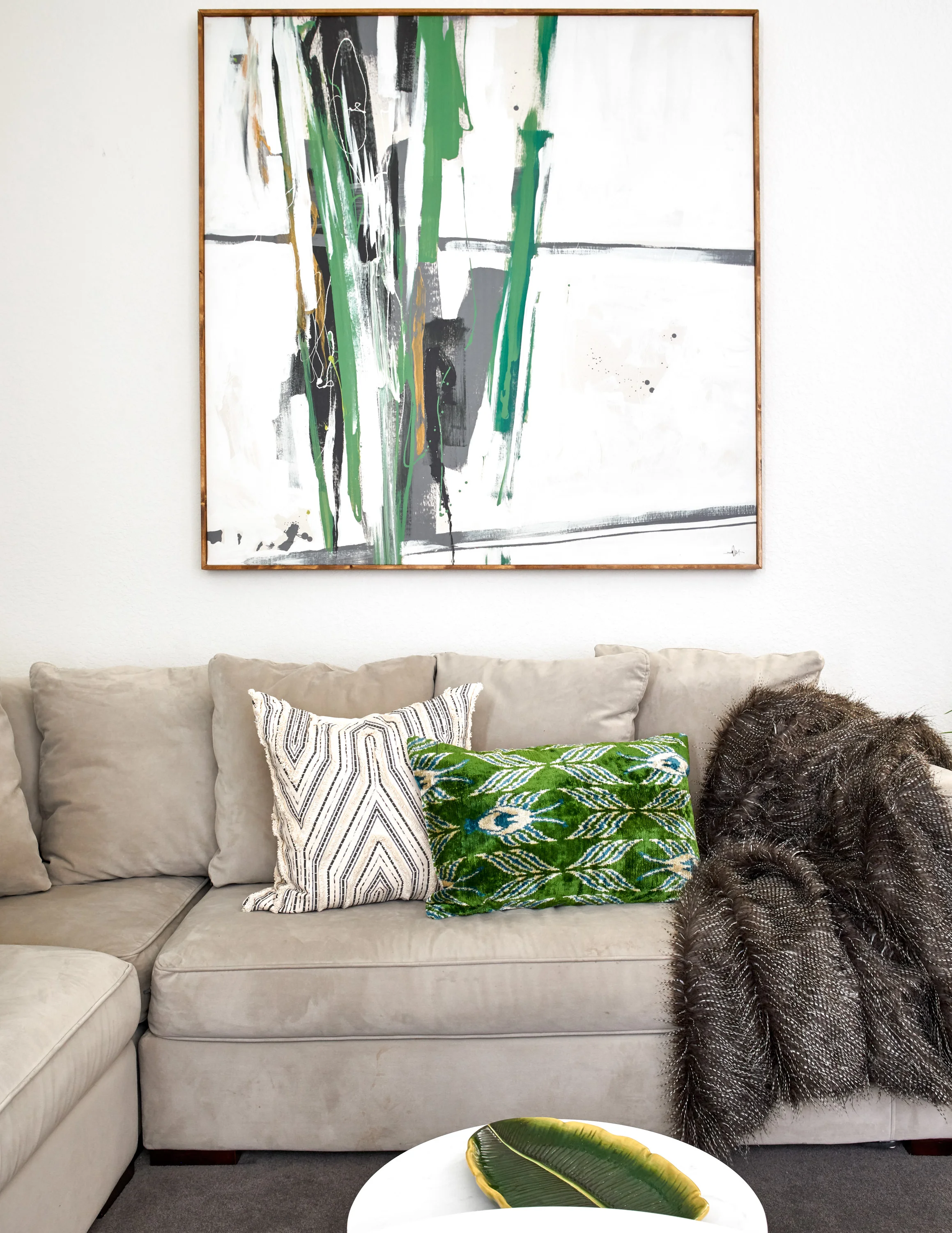 The Client wanted this upstairs TV room to feel cozier and more put together. We moved the existing art that the client painted, into one of the guest rooms.