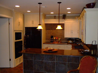 I blogged a couple weeks ago about a kitchen that was getting a transformation that you wouldn't believe. Well, here are the before and after pictures. We re-faced the kitchen cabinets so we wouldn't have to totally replace them all. Painting them and then adding new hardware makes them look brand new! What a difference the lighting makes. Thank you Judy for making my job so enjoyable.
