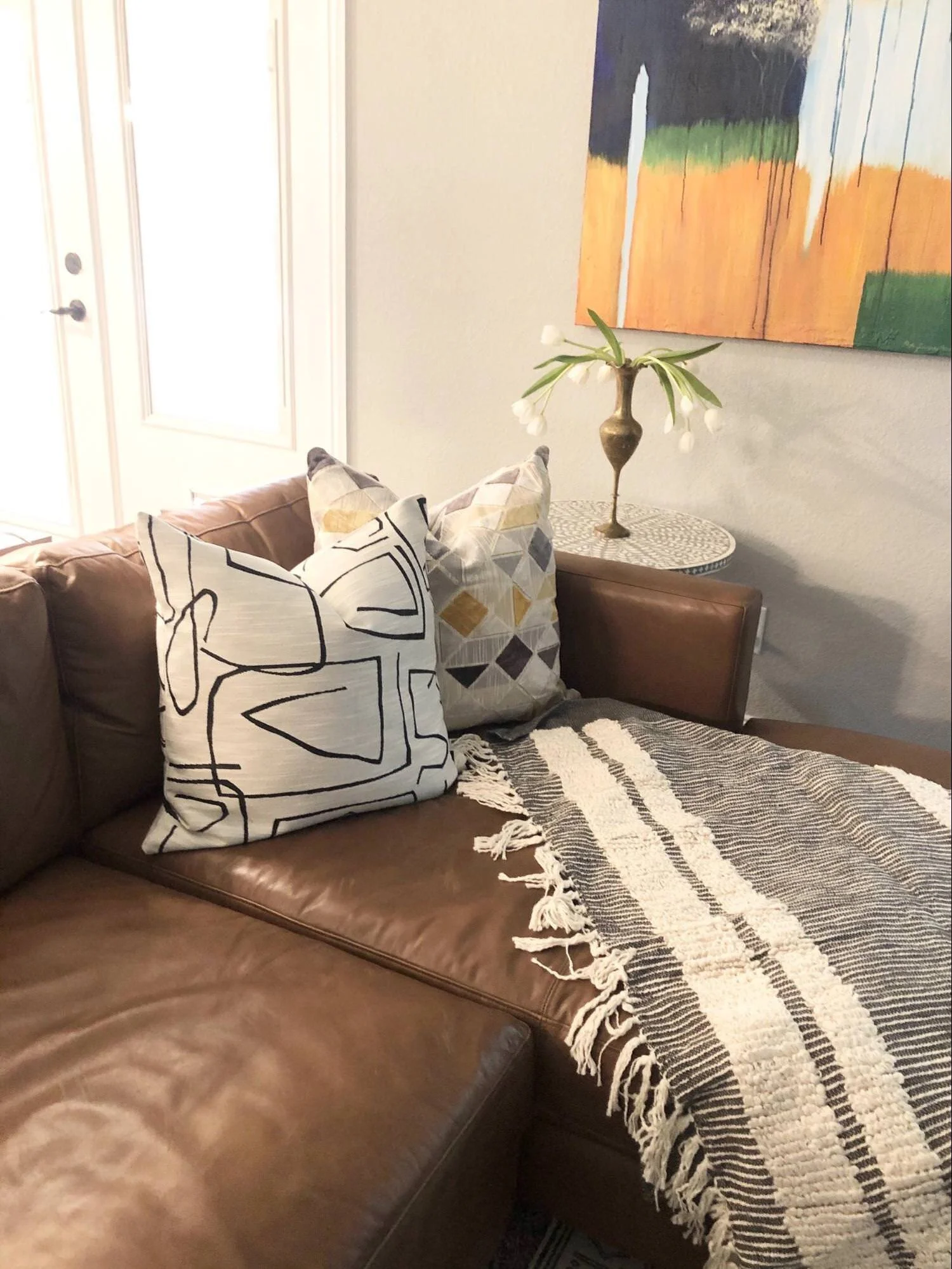 Live plants always make a room come alive! I knew we needed to use some texture in the space and a rattan plant stand was the solution.