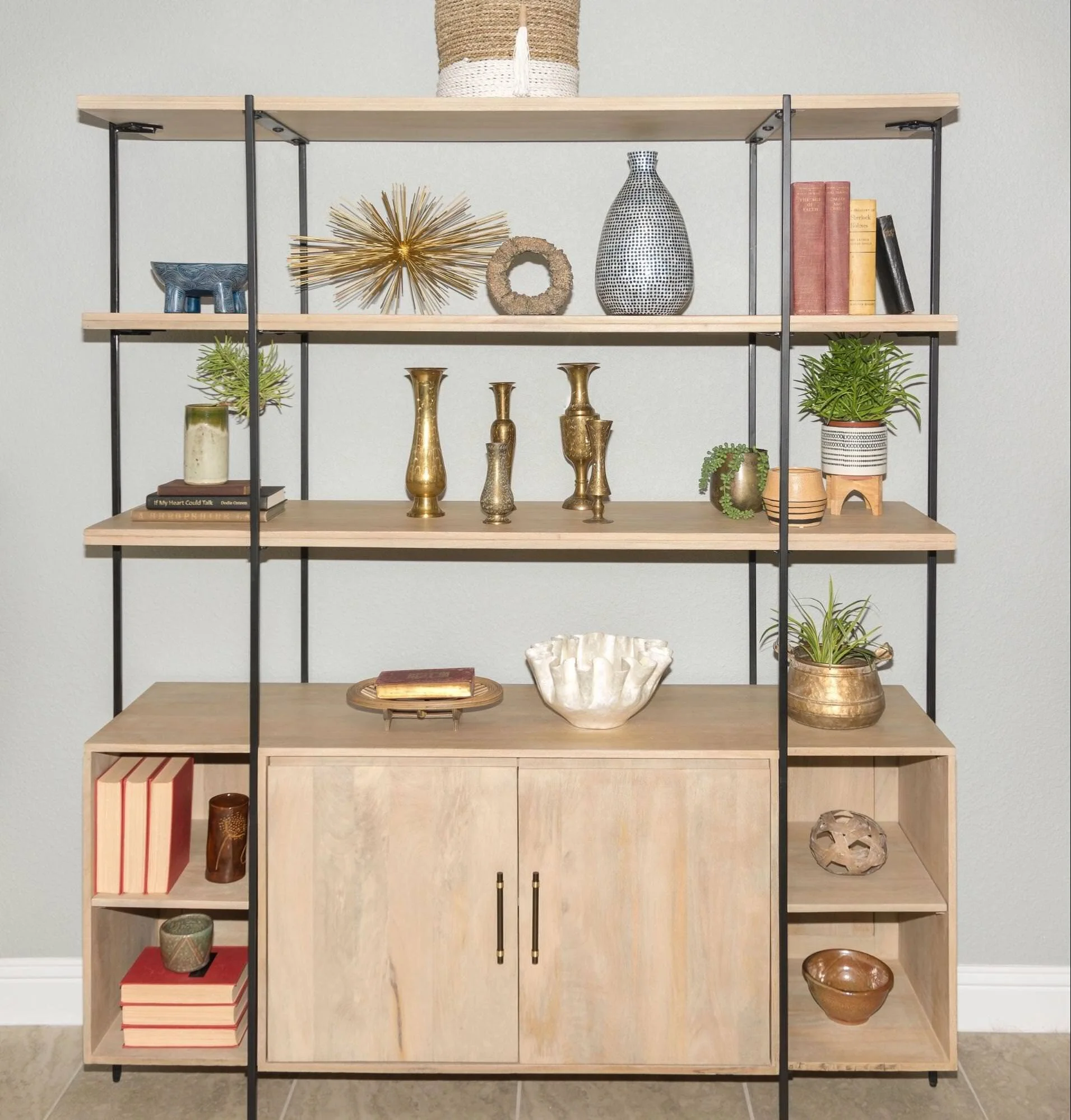 We added collected items like pottery, vintage gold vases, books and live plants!