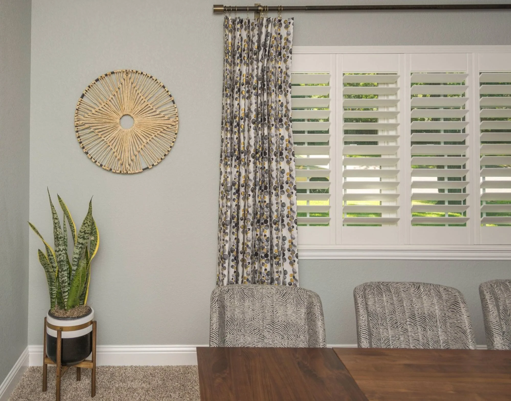 The draperies softened the room and added some fun but kept it sophisticated. The hardware with the black and gold, tie in with the buffet! As a designer, these are all the details that keep us up at night!