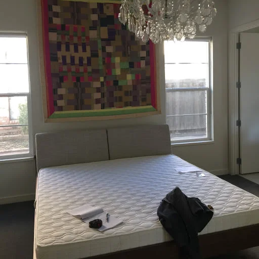 The wall that you see when lying in bed had to be fantastic because this is what they see every night while sitting in bed. I knew that an abstract painting would do the trick.
