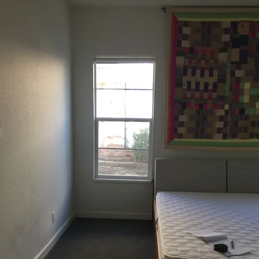 The client did not want any draperies and I agreed that drapes would fuss up the space. We didn’t want matching side tables because of the space on his side by the bathroom door. There Wasn’t much room for walk through space. This master bedroom now has a clean, minimal look but still feels inviting.