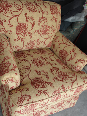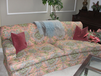 One of my wonderful clients decided she wanted to re-upholster her couch and chair that she inherited from her parents.  The couch has a really nice curve to it which is hard to find.  It's also incredibly comfortable.  She could have purchased a new couch but they were both the right scale for the room and re-upholstering them allows us to really create a custom/designer look vs. a showroom piece.