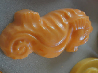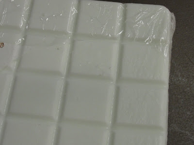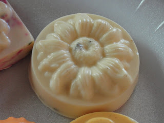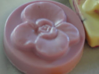 We melted the bars of soap that we bought at "Michaels" and we added color. We poured the melted soap into molds and added some fragrance (lavendar was our choice). I think they all look beautiful. I've got soap to last us all year through. The kids wrapped them up and are giving them as gifts. Proud as can be of course!