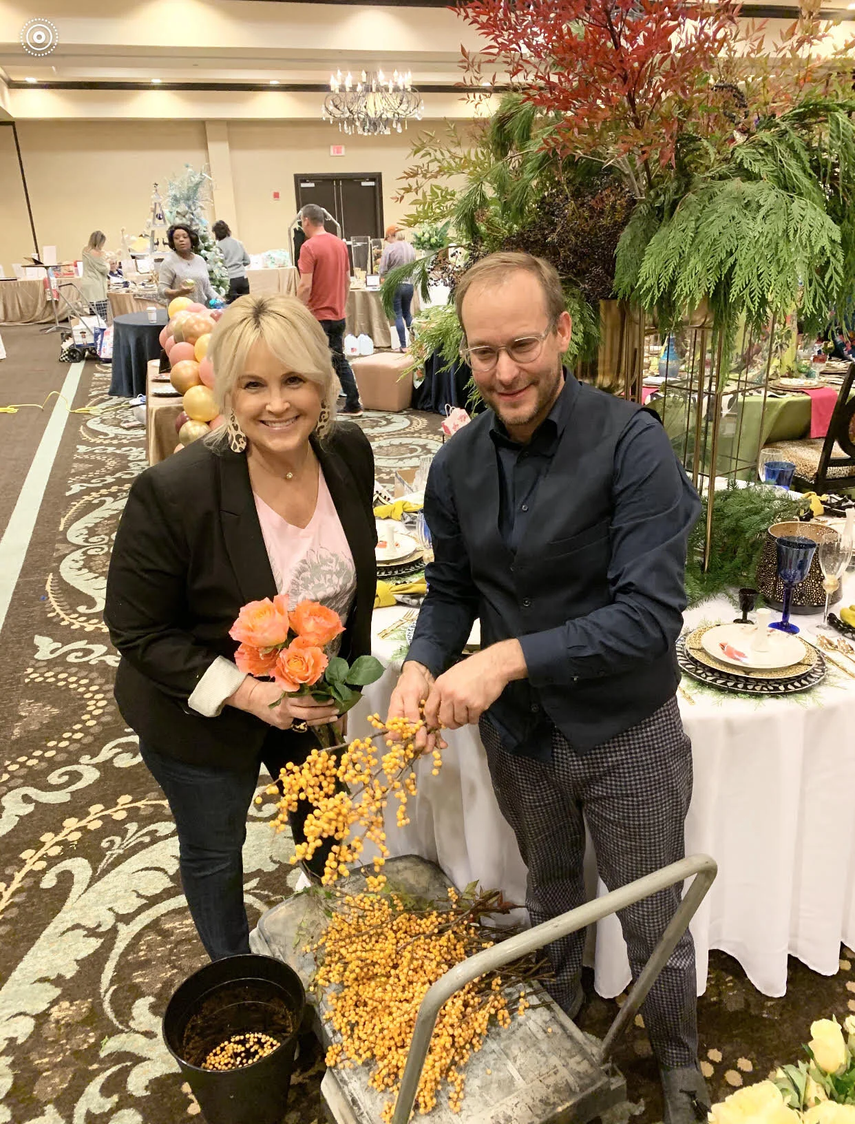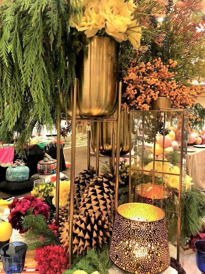 I partnered with Shane with Botanical Mix. He provided all the fresh flowers for the table. I came up with a design plan for the table and we created the design on the spot. I wanted it to feel loose and free so we had fun creating it together.