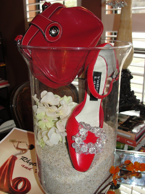 I decided to have some fun with the whole fashion theme and come up with some Fashion Show Centerpieces that I thought would be amazing "using what I have." What do you think??