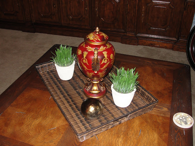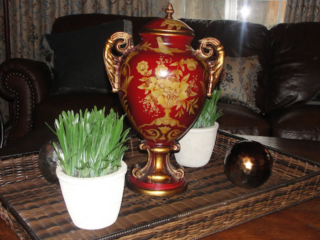 As you know, one of my decorating specialties is "using what you have".  Well today, I put that skill to good use.