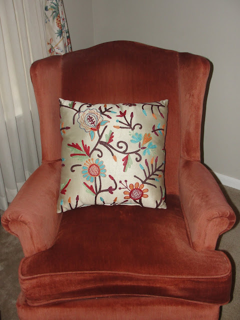 Added this elegant pillow to this cute chair on the stairway.  I fell in love with its shape!