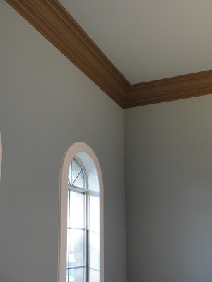 The adjoining dining room.. It is so beautiful with the complimentary crown molding! Sherwin Williams "Breezy"
